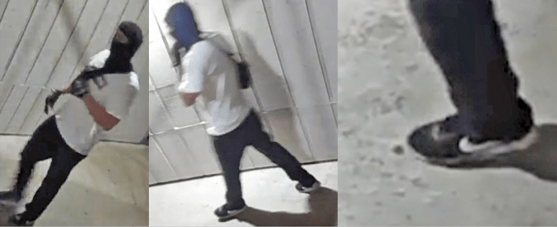 The suspect is described as a Latin male in his 20s, 5’8”, weighing 180-200 pounds. In both assaults he wore a black ski mask, black pants and black Nike shoes with a white swoosh logo.