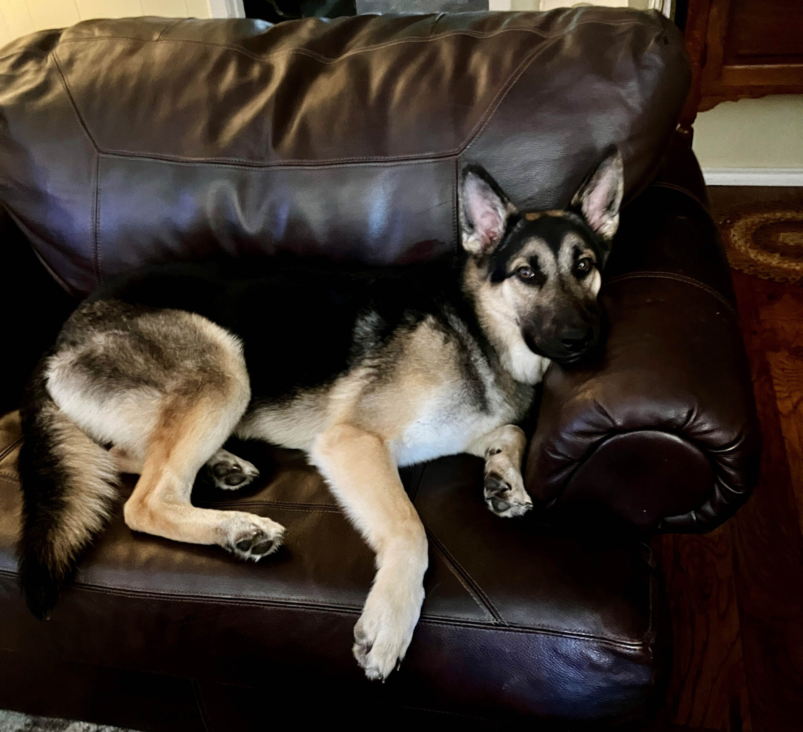 Gant says Kobi has fit in great with his new family, although there has been a bit of a learning curve to living indoors. He especially enjoys a good bone, barks to excess on occasion and has forged a civil relationship with the family cat.