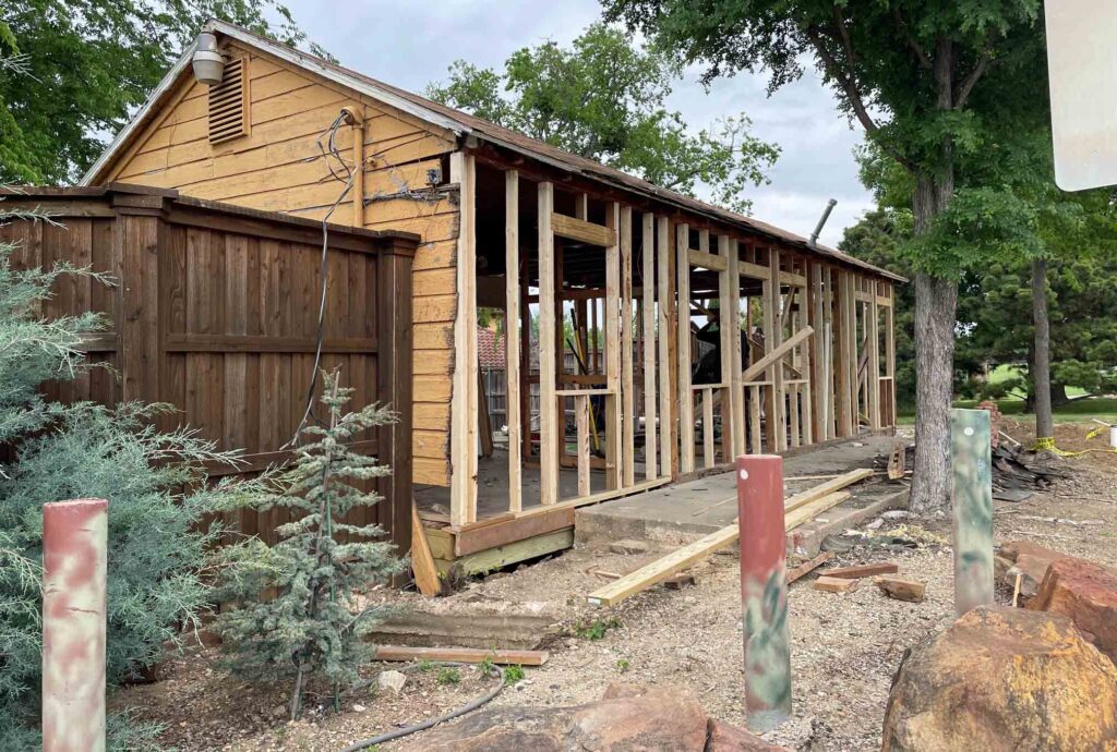 While driving past the house in mid-April, I noticed work crews had taken it down to the studs. I pulled into the parking lot at NorthStar Preschool, walked over and looked around. I knew from previous research that the house was owned by residents of the gorgeous yellow Mediterranean home next door, so I did what any intrepid reporter worth her salt would do. I walked up and knocked on their door.