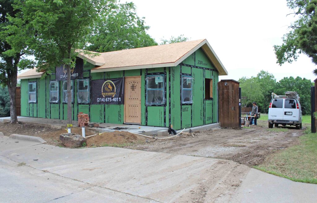 The small, yellow house next door was owned by a parishioner of Dr. Wayne Brashear, who preached for 55 years at Vertical Life Church, and he received the property upon the grateful congregant’s death. Brashear rented the house to a married couple attending classes at SMU, then later to a group of day laborers working in the area. Steve Whitney bought the house in 2013 for use as an office, renovating the interior and adding a big back deck to enjoy extensive wildlife in the woods and creeks nearby. He improved fences and gates so that he and business visitors could push a button and park in a secure gravel lot out back.